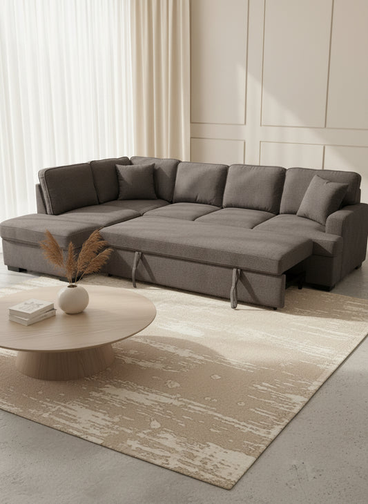 Lyon - Modern Fabric Sofa Bed Sectional With Storage Armrest