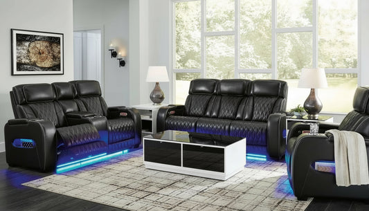 Party Time - 3 PC Modern Power Recliner Set With LED Lights, Adjustable Headrests & USB Ports