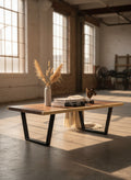 - natural wood and black-gold metal leg