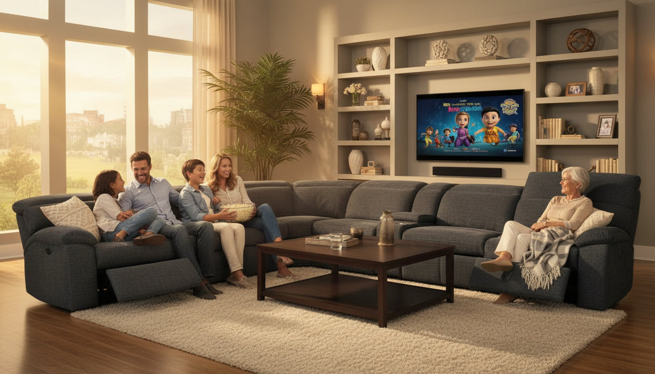 - Power recliners on each end of the sectional