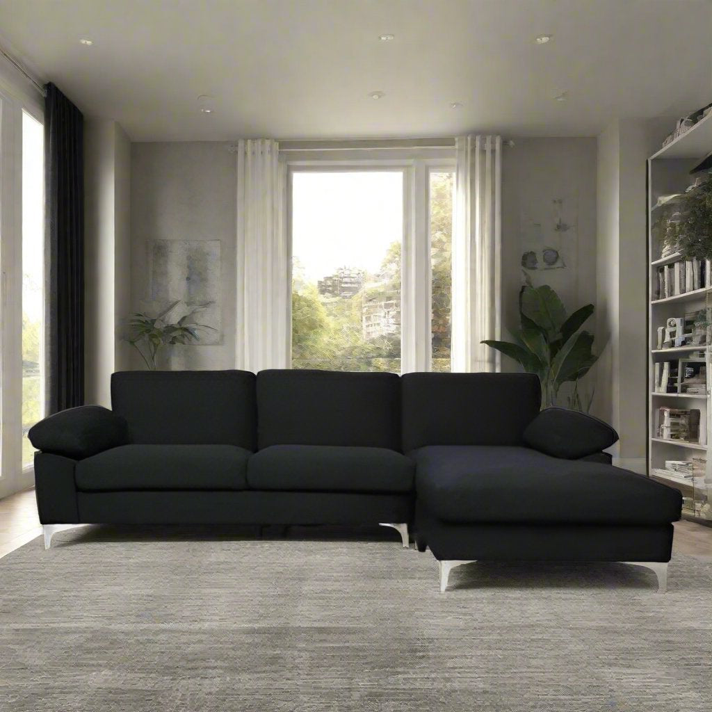 Meet the Zena Velvet Sectional — a sleek and stylish update to your living room. With its luxe velvet upholstery and elegant chrome legs, this sectional delivers polish with a comfy vibe, perfect for modern yet cozy spaces.